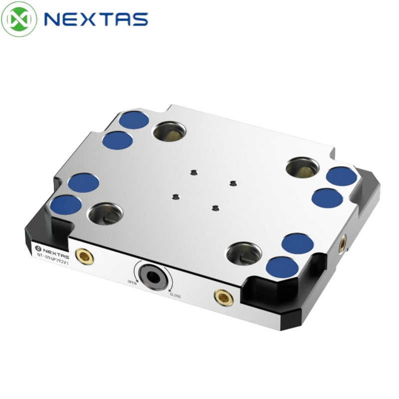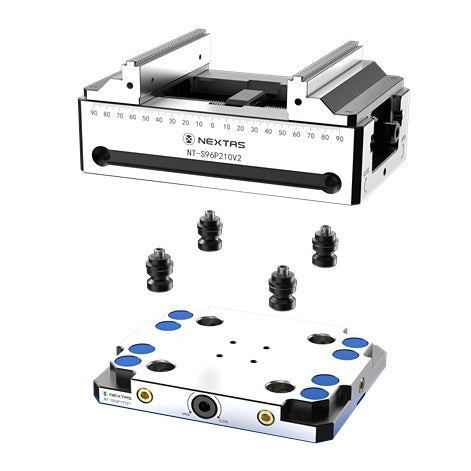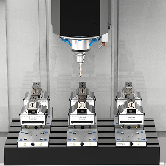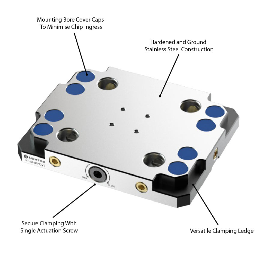 Nextas Zero Point Plates provide a rigid and repeatable way of mounting vices, jigs and fixtures in a machine tool. The modular quick change design reduces setup time and minimises manual alignment